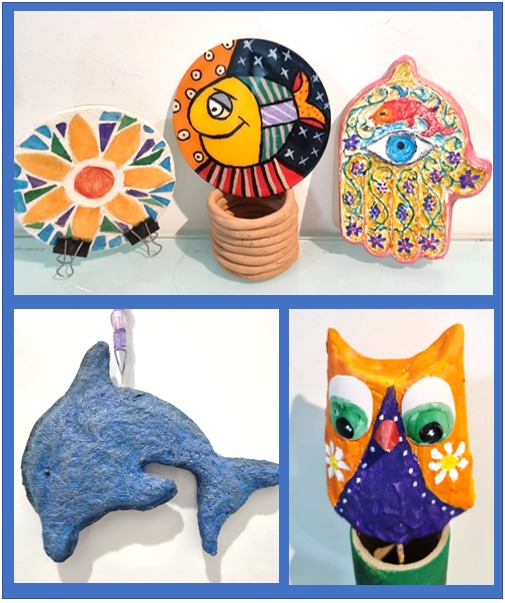 בחוג נפתח את הדימיון ונלמד לבטא את עצמנו בדרכים יצירתיות. נתנסה במגוון רחב של חומרים וטכניקות, ביניהם: עיסת נייר, גבס, פלסטלינה, קולאג' ועוד...