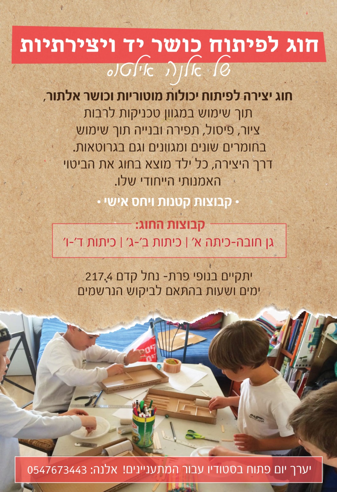 חוג לפיתוח כושר יד ויצירתיות | אלנה אילטוס | נופי פרת